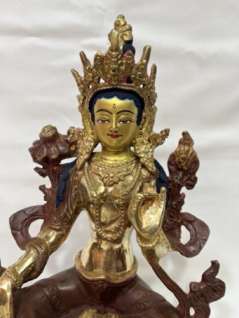 This green tara statue is purely handmade in nepal with brass and bronze.