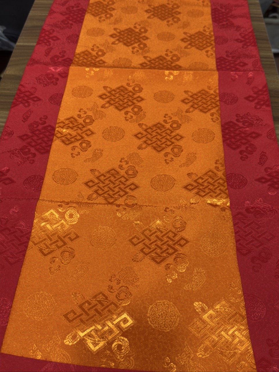 This is high quality Tibetan traditional Table runner made up of silk brocade with endless knot design on it. This is made in Nepal . It can be used to decorate your meditation room or add oriental style in any part of your home.