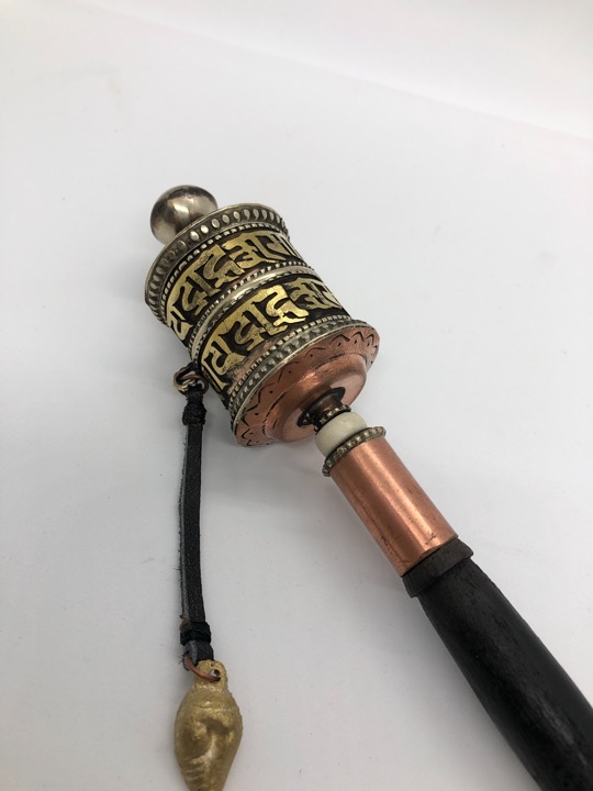 This mini prayer wheel is made up of brass and copper , handle part is made up of wood. It has got beautiful hand crafted mantra on it . Inside prayer wheel there is a blessed mantra. This prayer wheel is handmade in nepal by our professional Tibetan artisan and craftsmen .