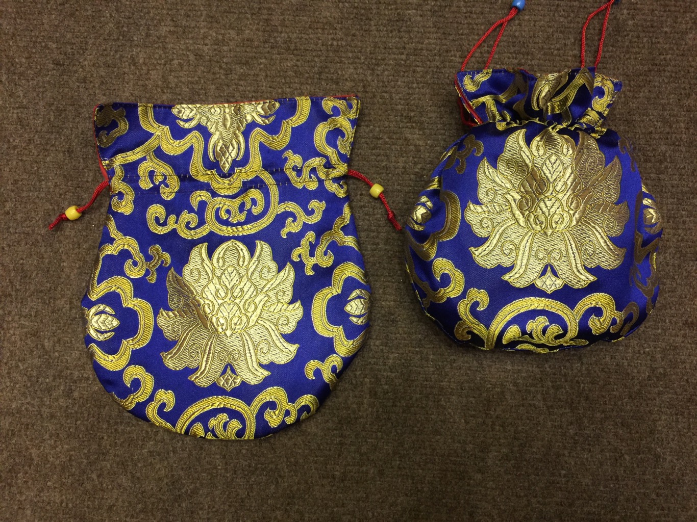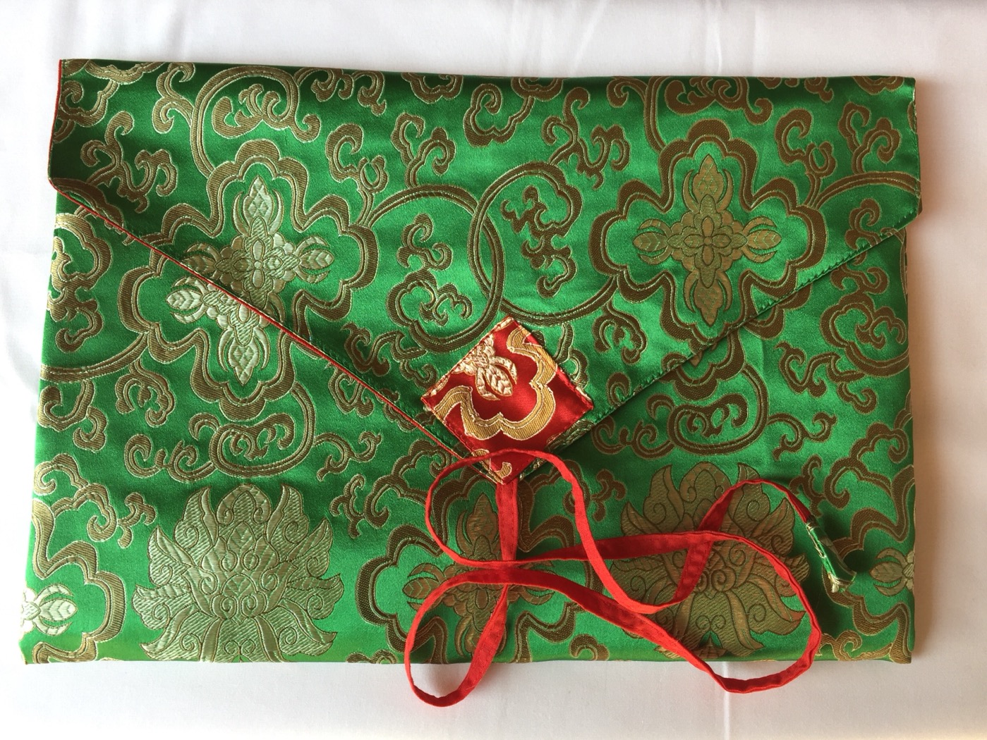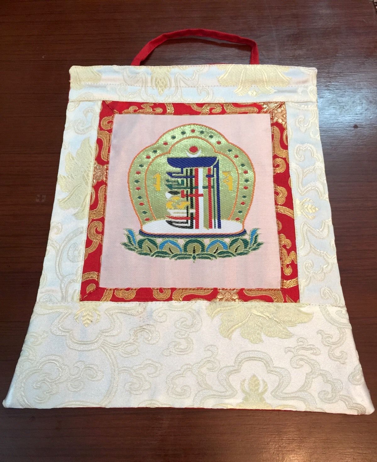 A beautiful and handy traditional lotus design silk brocade book covers hold the Tibetan Buddhist prayer books. The inside is covered with cotton material.These Book Cover bag to keep your books safe and handy to carry with you. Also wonderful for wrapping statues and other precious items.