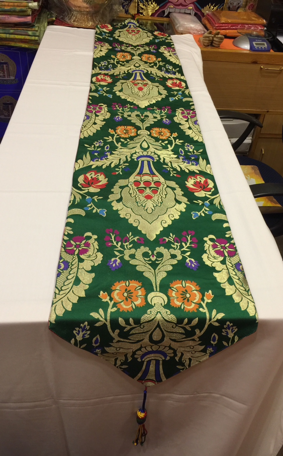 This is high quality longest size Tibetan traditional Table runner made up of silk brocade with Norbu design ( precious jewel ). This table runner has got 5 coloured blessed tassel at both side , this tassel gives this runner a unique wonderful look.