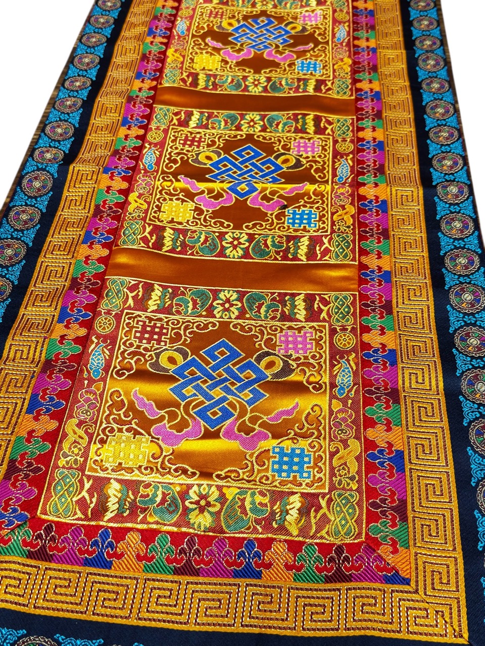 Tibetan buddhist endless knot light silk brocade table runner / shrine cover